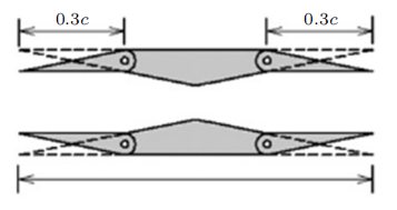 利歇尔双翼同时应用了平板双翼的激波减弱效应和布兹曼双翼的激波消除效应, 研究结果表明, 其波阻力为相同升力下平板翼型的2/3。