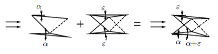 考察由两个平板翼组成的双翼构型, 忽略两个平板翼之间的干扰, 如图4所示。由式(1)和式(2)易得:与单翼构型升力相等时, 双翼构型的攻角为单翼构型的1/2。进而, 双翼构型的阻力系数为单翼构型的1/2(平板相对厚度为零, 即由厚度导致的波阻忽略不计)。即, 产生相同升力的情况下, 双翼构型比单翼构型产生的激波大幅减弱了, 进而减小了升致波阻。