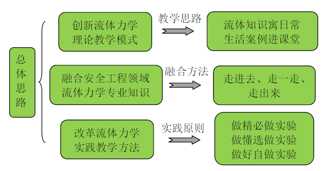 针对目前安全工程流体力学教学过程中存在的问题,提出了理论模式创新、专业知识融合与实践教学方法改革的综合教学模式,并基于此建立了创新教学模式总体思路(图1)。