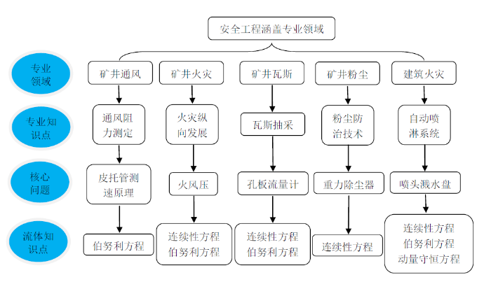 (2)融合安全学科领域流体力学专业知识。安全工程具有很强的学科交叉性,是流体力学工程化应用最好的体现,结合学生对专业课程的强烈求知欲,将本学科领域的标志性、前沿性、最新成就中蕴含流体力学的知识点融入教学;使学生能够在专业领域"走进去、走一走、走出来",在对理论加深学习的基础上,拓展对专业领域的认知度,有机衔接后续要学习的系列专业课。