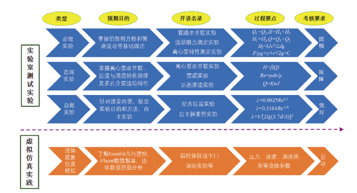 (3)以学生对专业课浓厚的求知兴趣为推手,延伸安全工程中的流体力学知识点,使学生能够"走进去、走一走、走出来",并启发学生在共性知识上举一反三。丰富流体力学实践教学环节,建立了围绕流体力学核心知识点的"必做$+$选做$+$自做"多个实验内容,对必做、选做和自做部分提出不同要求,鼓励学生结合科研选题和教师前沿性课题,自主组队开展探索性自做实验。