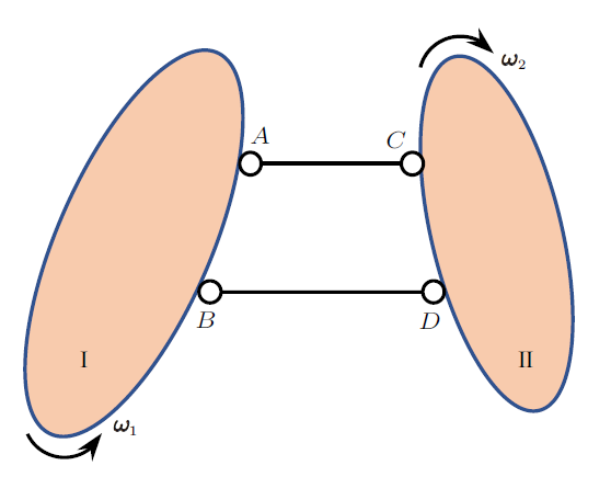 1.2 定理二: 无穷远虚铰(两根平行链杆)连接的两刚片,角速度相等