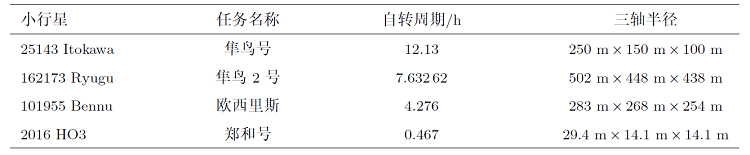 ... 采样返回任务目标小行星参数[22 ,24 -25 ] ...