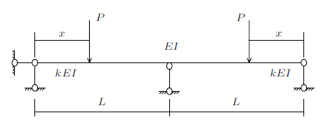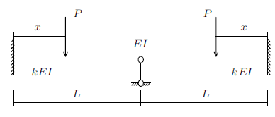 将两端长为$x$的两段杆变为抗弯刚度为$kEI$的等截面杆。结构计算简图如图10所示。