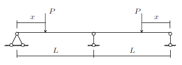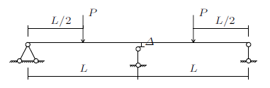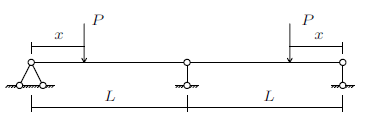 从力学简化模型上看,一个和尚挑水,独自承受两桶水的力$P$,此为有一个支撑的双悬臂静定梁结构,如图1所示。