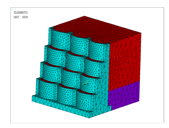 ... 划分网格时采用自由划分网格,土体采用Solid45单元,挡土墙材料采用Solid65单元[10 ] .本模型共划分为47 297个单元,204 504个节点,网格划分图如图5 所示. ...