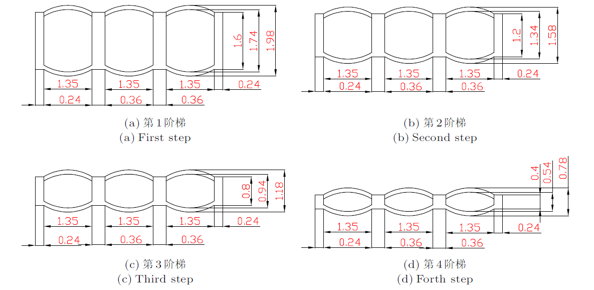 | 图3 各级阶梯剖面图(单位:m) |