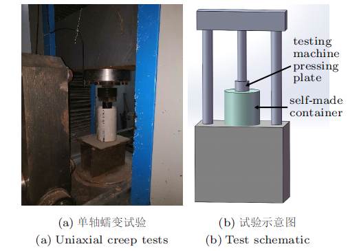 本次力学试验采用RYL-600岩石剪切流变仪(图2 ),该设备最大轴向试验力为600 kN,试验力测量误差一般小于$\pm$0.5%。对试样进行单轴压缩试验,然后自制容器,对试样进行酸腐蚀浸泡单轴蠕变试验。